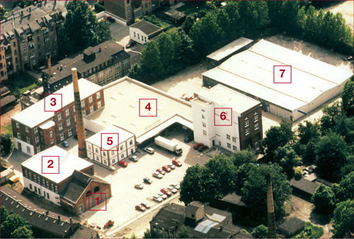Gewerbekomplex mit mehreren Gebäuden für Büros und Fertigung sowie Lagerhallen - Alles in renoviertem Zustand (1992).